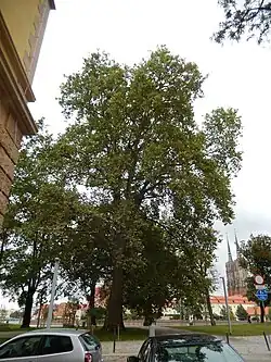 | 12 | Platan klonolistny Platanus x acerifolia o obwodzie 495 cm | Plac Katedralny, na skwerze przed Katedrą, w odległości 10 m od ulicy | 1 | Decyzja Nr 28/80 z dnia 11 grudnia 1980 r. | ![]() |