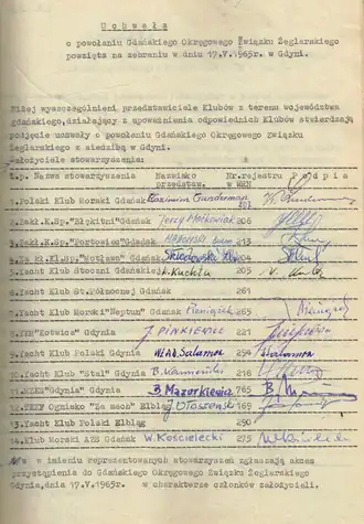 - ↑ Sprawozdanie z działalności Pomorskiego Związku Żeglarskiego za okres od 31.03.2019 r. do 15.03.2020 r. - [online], marzec 2020.