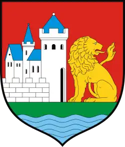 - księstwa wendyjskiego, w polu srebrnym gryf w lewo w trzy czerwone i trzy zielone skosy