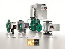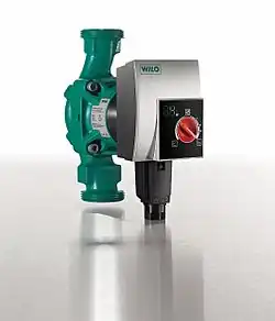 - Pompa obiegowa bezdławnicowa o wysokiej sprawności – pompa napędzana synchronicznym silnikiem elektronicznie komutowanym z wirnikiem w formie magnesu trwałego (silnik ECM – ang. Electronically Commutated Motor).