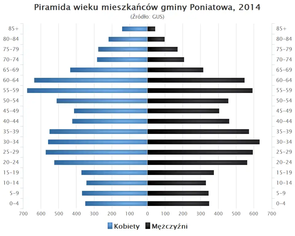 - Piramida wieku mieszkańców gminy Poniatowa w 2014 roku[1].