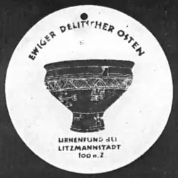 W czasie II wojny światowej naczynie to, z powodu obecności na nim swastyk, było wykorzystywane przez nazistów do celów propagandowych. Jego wizerunek reprodukowano w licznych kopiach na plakatach, widokówkach i w gazetach, zaś dwuramienna swastyka stała się herbem okupowanego miasta Łódź. Propaganda ta miała na celu potwierdzać germańską genezę ziem Polskich i usprawiedliwiać okupację[4]. Popielnica zaginęła w trakcie wycofywania się Niemców z Łodzi[3]. Do Polski wróciła w latach 90. i obecnie znajduje się w Muzeum Archeologicznym i Etnograficznym w Łodzi. Oryginał przechowywany jest w magazynie, a na wystawie znajduje się jej kopia.