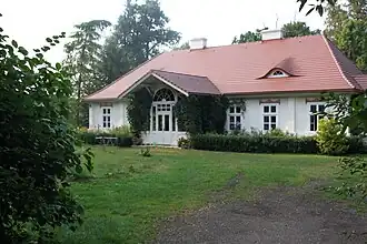 - Dwór wraz z otaczającym parkiem oraz warzywnik, sad, stawy rybne i część leśna.