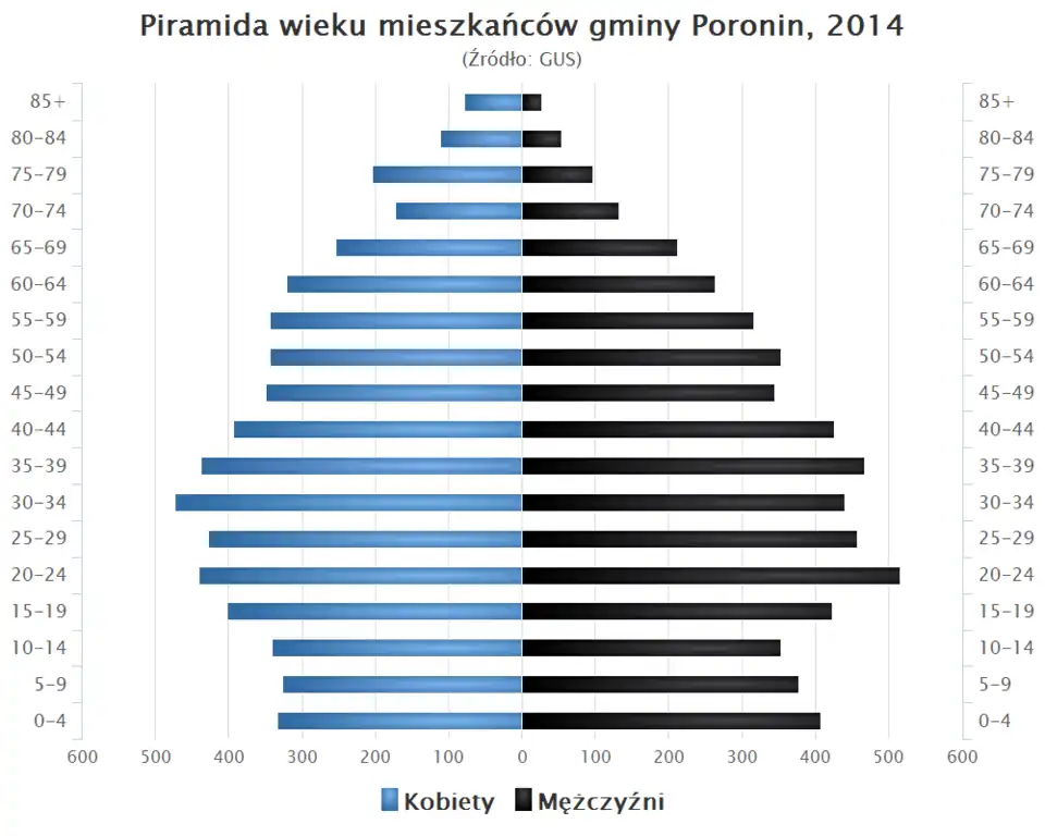- Piramida wieku mieszkańców gminy Poronin w 2014 roku[1].