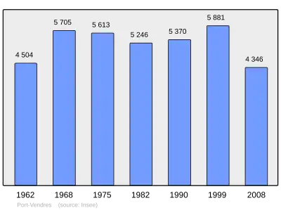 Według danych na rok 1990 gminę zamieszkiwało 5370 osób, a gęstość zaludnienia wynosiła 364 osoby/km² (wśród 1545 gmin Langwedocji-Roussillon Port-Vendres plasuje się na 53. miejscu pod względem liczby ludności, natomiast pod względem powierzchni na miejscu 539.).