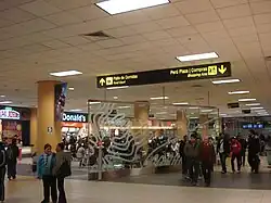 Food Court – Znajduje się na drugim piętrze, składa się z takich obiektów jak: McDonald’s, Papa John’s, Starbucks i inne, jest też Dunkin’ Donuts obok głównego wejścia do terminala.