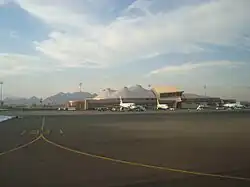23 maja 2007 otwarto drugi nowoczesny terminal z dwoma poziomami powierzchni 43 000 m². Lotnisko ma terminal krajowy i międzynarodowy z sześcioma bramami. Budynek terminalu składa się z trzech komponentów: dwóch hal o okrągłym kształcie spojonych przez klinowate zadaszenie. Hale te służą dla obsługi pasażerów tranzytowych, kontroli paszportowej, są w nim również zlokalizowane sklepy bezcłowe i obszary dla VIP-ów, jak również kawiarnie i restauracje. W nowym terminalu funkcjonuje klimatyzacja. Jego kształt, nawiązując do tutejszej rdzennej kultury, przypomina beduiński namiot.
