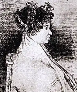 Josefa Bayeu (1747–1812) była żoną Goi od 1773 aż do śmierci w 1812 roku. Pochodziła z zamożnej aragońskiej rodziny o tradycjach artystycznych. Jej bratem był Francisco Bayeu, malarz, który wspomagał karierę Goi na królewskim dworze. Mimo swojego pochodzenia Josefa najprawdopodobniej była analfabetką[2]. Xavier de Salas opisuje ją jako naiwną, dobroduszną i niemądrą[10]. Goya ożenił się z nią dla koneksji, które posiadała jej rodzina w artystycznych kręgach. Niewiele wiadomo o jej życiu u boku malarza. Josefa wielokrotnie zachodziła w ciążę (być może nawet 20 razy) i roniła. Jedynie siedmioro dzieci przeżyło okres niemowlęcy, przy czym tylko syn Francisco Javier dożył dorosłości. Wielokrotne macierzyństwo Josefy było dla niej wielkim obciążeniem, zarówno fizycznym, jak i psychicznym[2]. Artysta rzadko wspominał o żonie w swojej obszernej korespondencji, nie była też jego modelką[11]. Jedyny potwierdzony wizerunek Josefy, który przetrwał do czasów współczesnych, to niewielkich rozmiarów szkic węglem z 1805 roku przedstawiający jej profil. Widać na nim blisko sześćdziesięcioletnią Josefę – postarzałą, lekko przygarbioną kobietę o zwiotczałej skórze i zmęczonym wyrazie twarzy[11][8]. Wydaje się spokojna, z nutą melancholii w oczach. Na głowie ma czepek, a ramiona okrywa wełnianym szalem[12]. Jej fizjonomia w niczym nie odpowiada delikatnym rysom twarzy młodej damy przedstawionej na olejnym portrecie[13][8].
