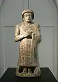 M | alabaster | 41 | posąg stojącego Gudei, z rękoma złączonymi na wysokości pasa; brakuje części stóp; inskrypcja na prawym ramieniu i na plecach | nieznane | Gesztinanna | Detroit Institute of Arts | autentyczność posągu jest podważana |