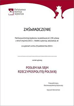 - ↑ Art. 44 ustawy z 9 maja 1996 r. o wykonywaniu mandatu posła i senatora.