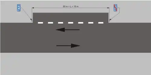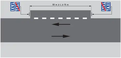Znak D-19 „postój taksówek” oznacza miejsce na drodze przeznaczone tylko dla postoju taksówek, z wyjątkiem taksówek zajętych; znak D-19 obowiązuje do miejsca umieszczenia znaku D-20 „koniec postoju taksówek”; jeżeli na postoju taksówek nie umieszczono znaku D-20, znak D-19 obowiązuje w odległości do 20 m od miejsca jego umieszczenia[2].