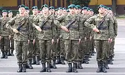 Formacja Wojska Polskiego w postawie zasadniczej, z bronią „przez pierś”