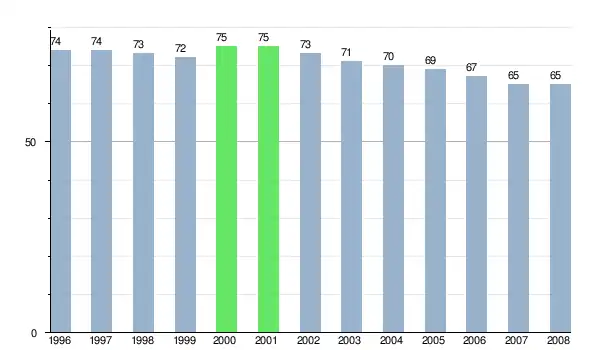 Zmiany liczby ludności w miejscowości Potôčky od 1996 roku.