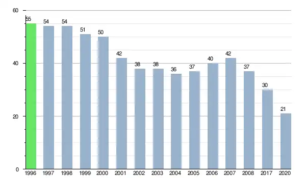 Zmiany liczby ludności w miejscowości Potok od 1996 roku.