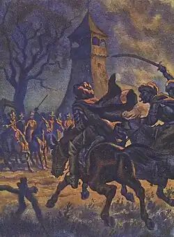 - ↑ W powieści nie pada jego imię, jednak występuje tu zbieżność nazwiska z Samuelem Oskierką, dowódcą wojsk polskich podczas bitwy pod Tykocinem (1656).