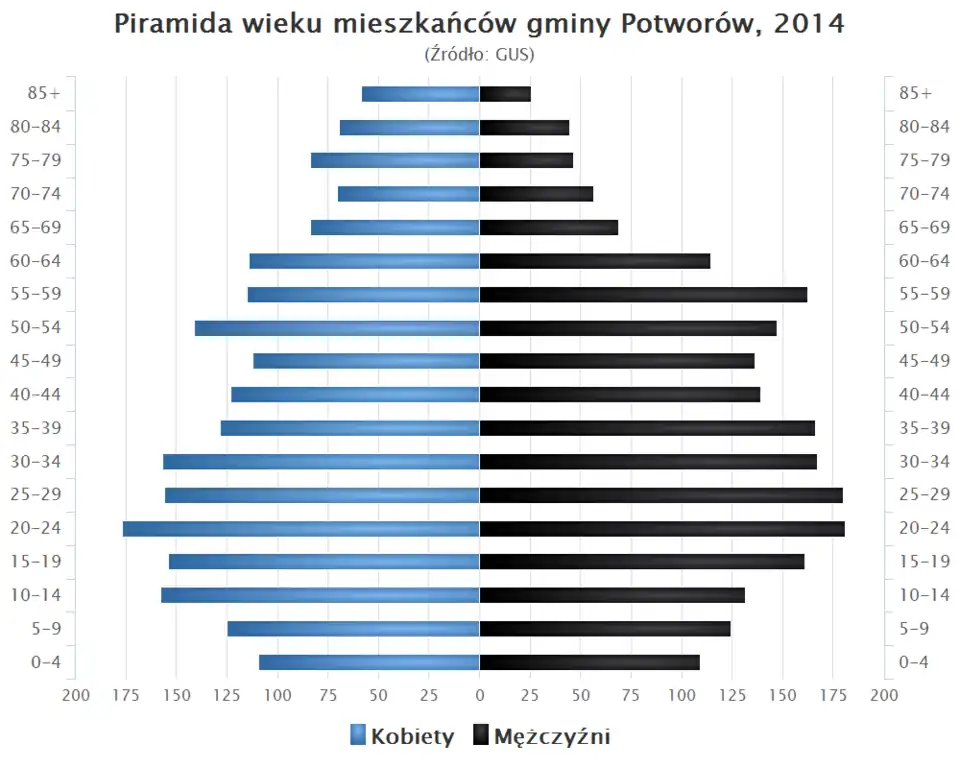- Piramida wieku mieszkańców gminy Potworów w 2014 roku[10].