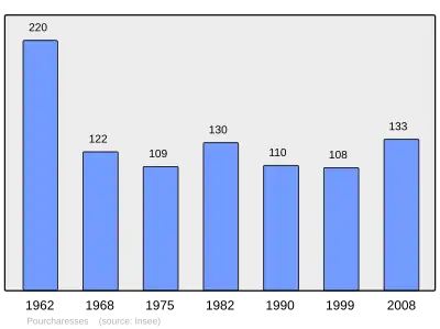 Według danych na rok 1990 gminę zamieszkiwało 110 osób, a gęstość zaludnienia wynosiła 3 osoby/km² (wśród 1545 gmin Langwedocji-Roussillon Pourcharesses plasuje się na 792. miejscu pod względem liczby ludności, natomiast pod względem powierzchni na miejscu 122.).