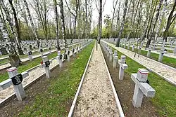 Brzozowe krzyże na grobach w kwaterze Harcerskiego Batalionu AK „Zośka” | |