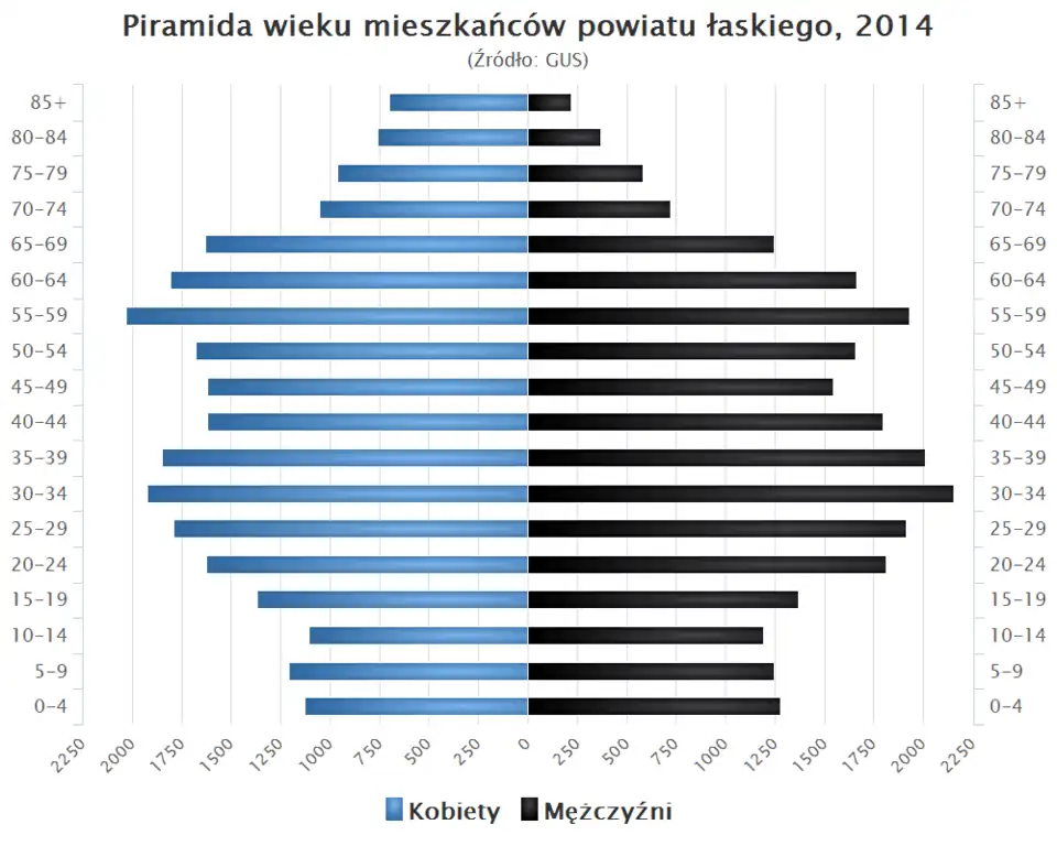 - Piramida wieku mieszkańców powiatu łaskiego w 2014 roku[10].
