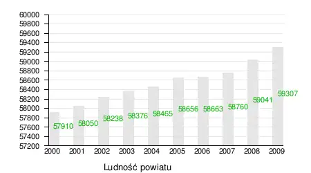 Według danych z 31 grudnia 2019 roku[2] powiat zamieszkiwało 61 425 osób. Natomiast według danych z 30 czerwca 2020 roku powiat zamieszkiwało 61 455 osób[3].