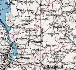 - ↑ Deutsche Verwaltungsgeschichte Provinz Pommern, Kreis Naugard. [dostęp 2017-09-06]. [zarchiwizowane z tego adresu (2017-09-06)].