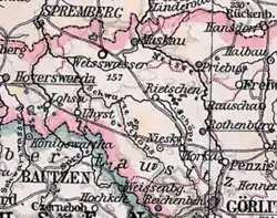 Do 1945 należał do pruskiej Prowincji Śląsk, a w latach 1945–1947 – bez miejscowości na wschód od Nysy Łużyckiej – do Regionu Saksonii.