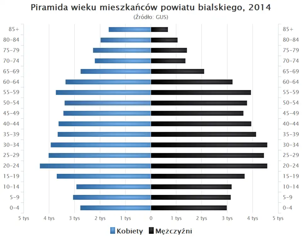 - Piramida wieku mieszkańców powiatu bialskiego w 2014 roku[2].