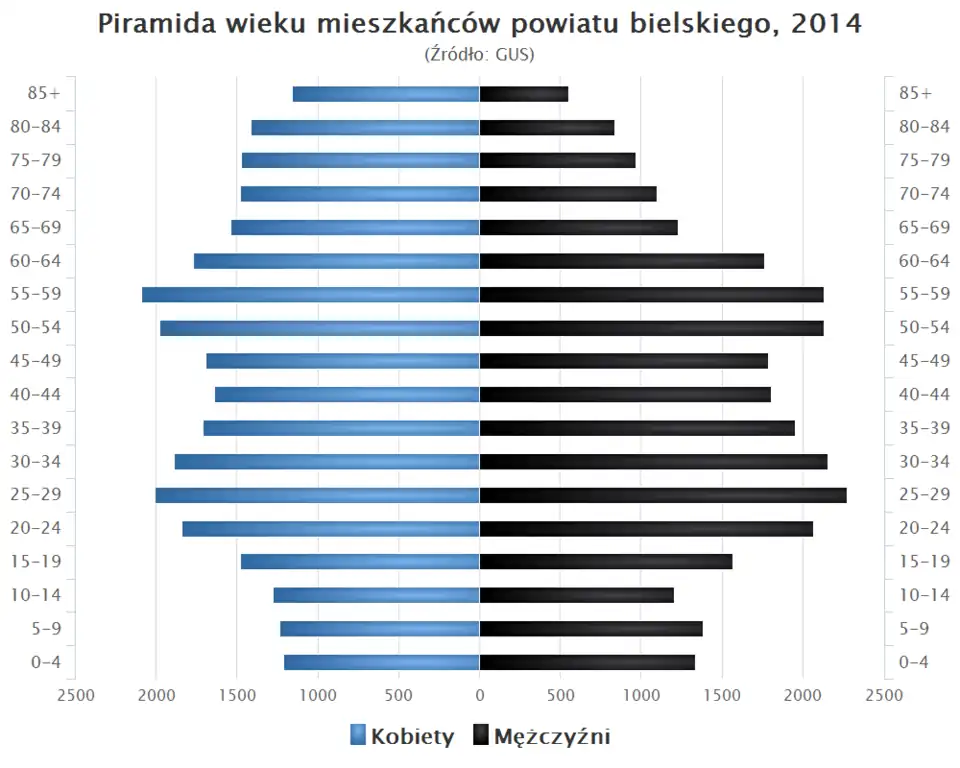 - Piramida wieku mieszkańców powiatu bielskiego w 2014 roku[8].