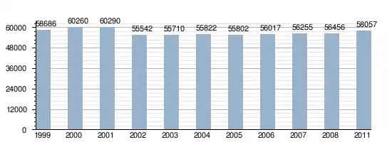 | Ogółem | 59 443 | 100 | 30 186 | 50,78 | 29 257 | 49,22 |