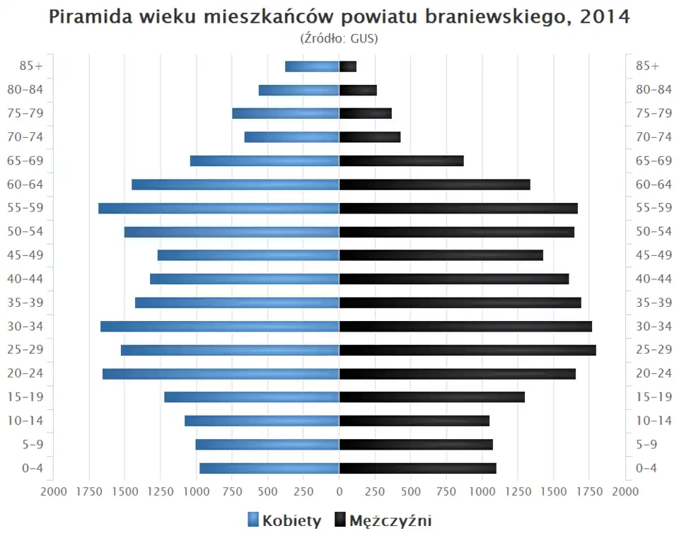 - Piramida wieku mieszkańców powiatu braniewskiego w 2014 roku[6].