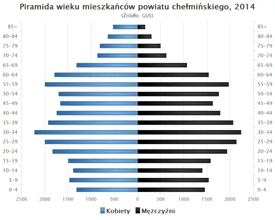 - Piramida wieku mieszkańców powiatu chełmińskiego w 2014 roku[3].