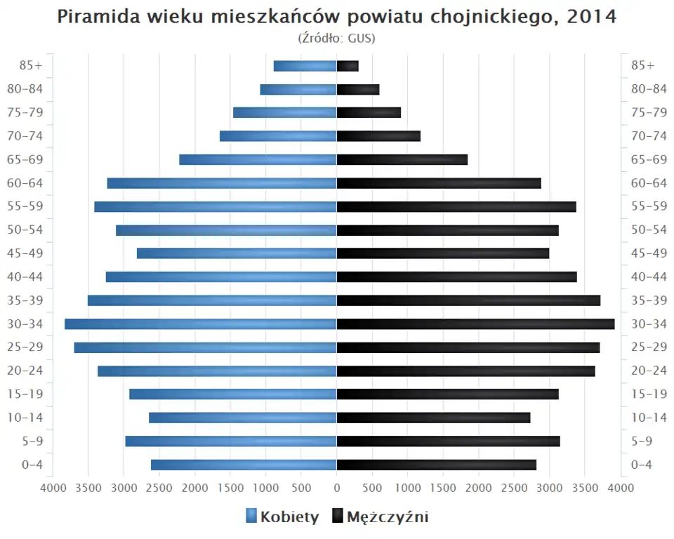 - Piramida wieku mieszkańców powiatu chojnickiego w 2014[38]: