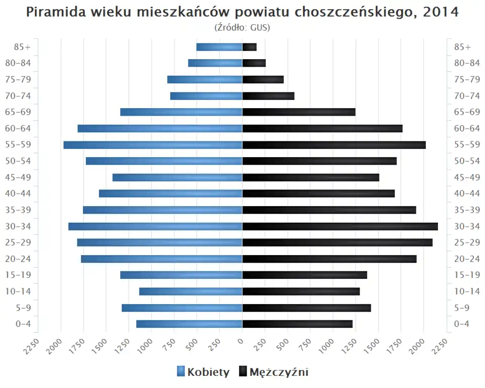 - Piramida wieku mieszkańców powiatu choszczeńskiego w 2014 roku[7].