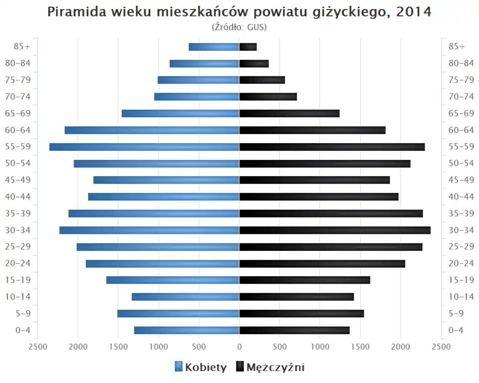 - Piramida wieku mieszkańców powiatu giżyckiego w 2014 roku[4].