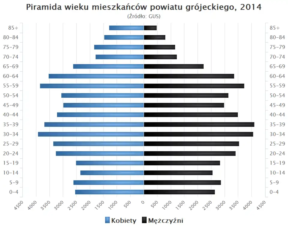 - Piramida wieku mieszkańców powiatu grójeckiego w 2014 roku[4].
