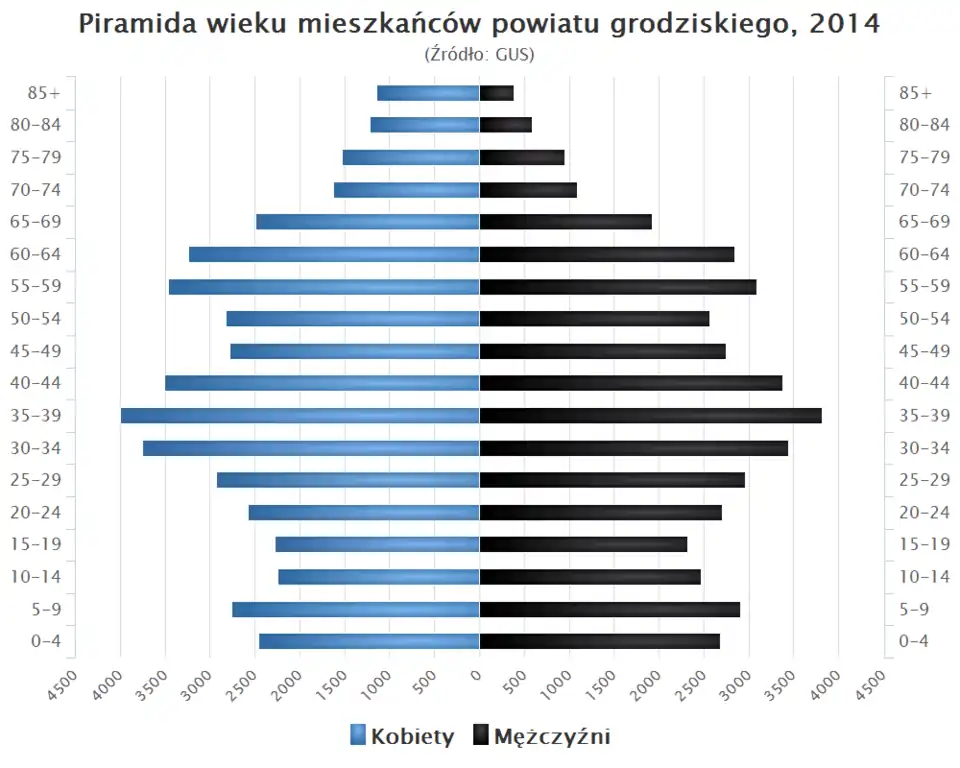 - Piramida wieku mieszkańców powiatu grodziskiego w 2014 r.[9]