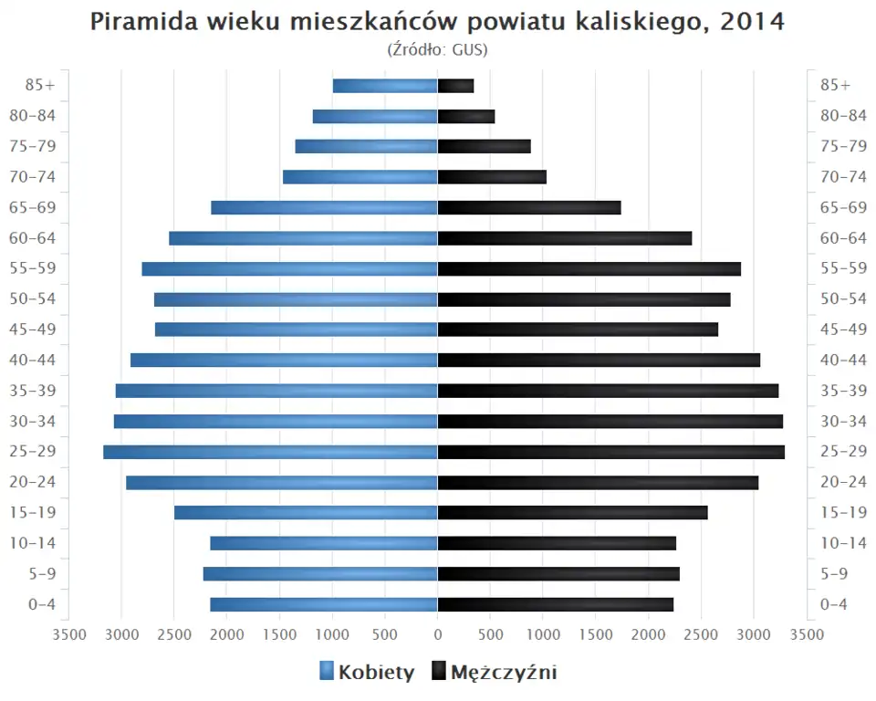 - Piramida wieku mieszkańców powiatu kaliskiego w 2014 roku[4].