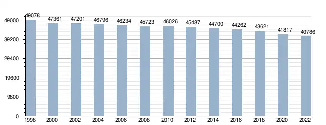 Źródło: Bank Danych Lokalnych[15]. Stan w dniu 31 grudnia.