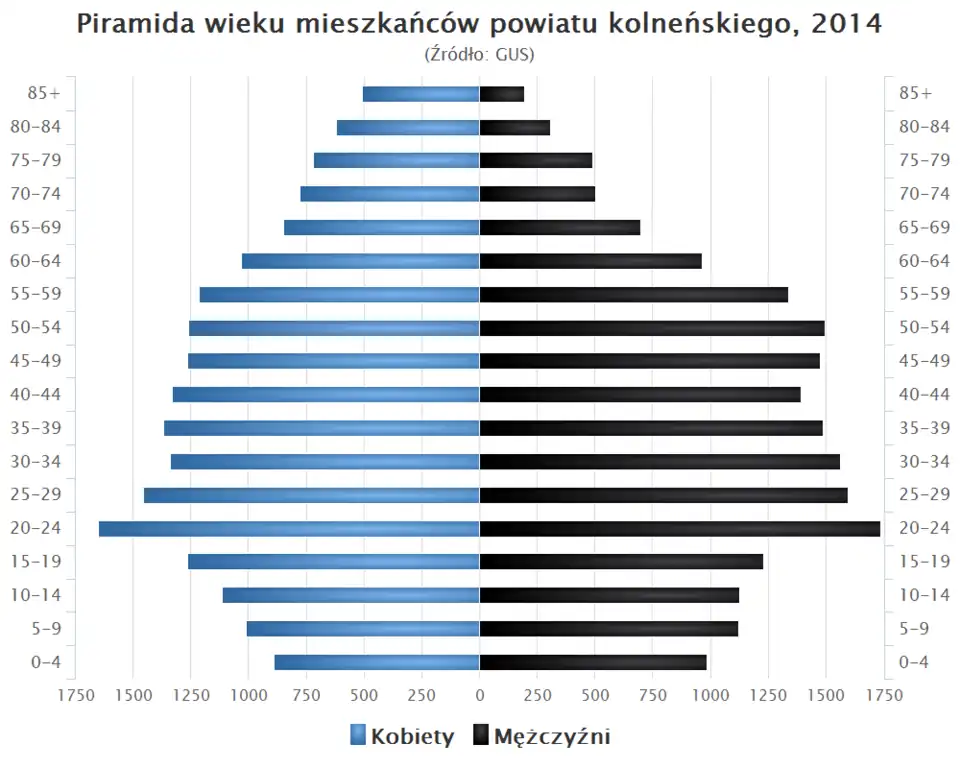 - Piramida wieku mieszkańców powiatu kolneńskiego w 2014 roku[5].