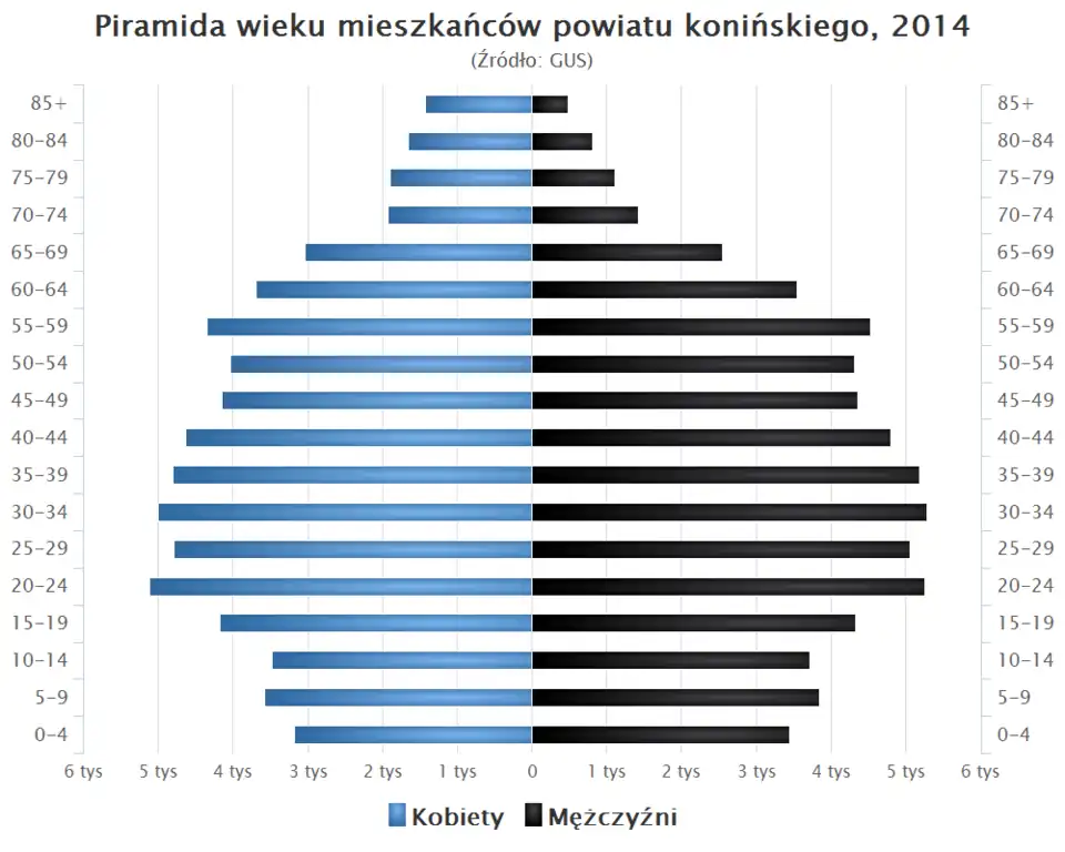 - Piramida wieku mieszkańców powiatu konińskiego w 2014 roku[6].