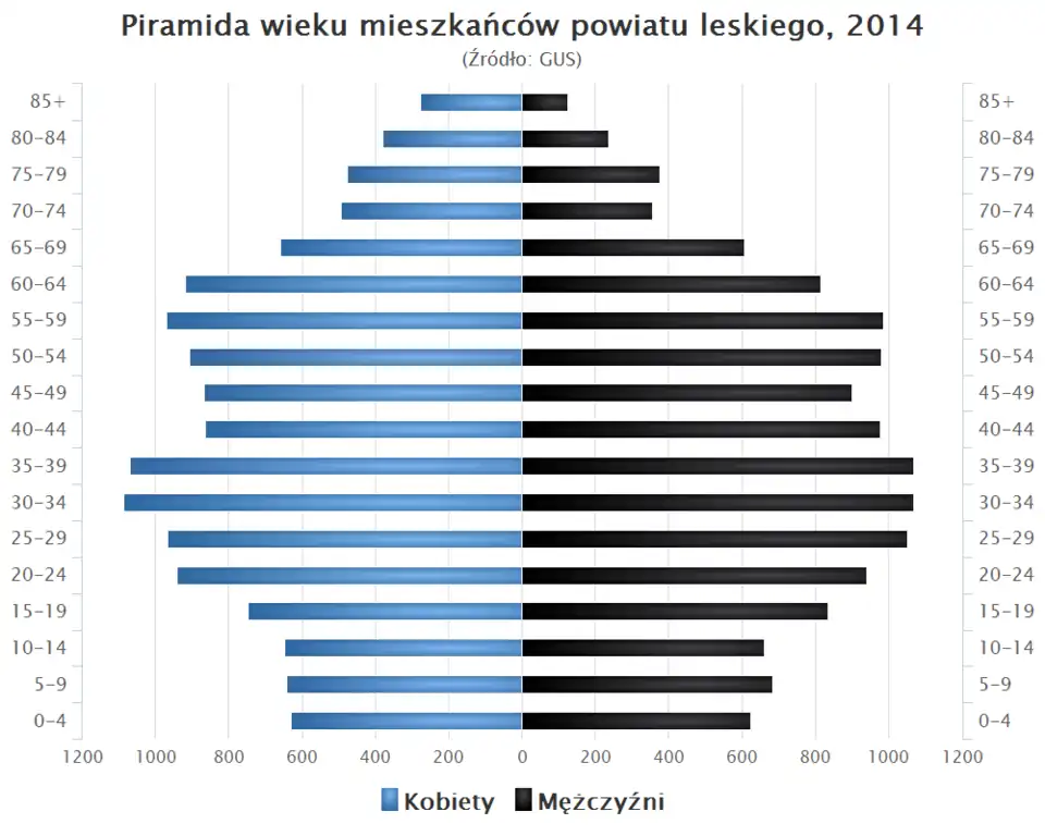 - Piramida wieku mieszkańców powiatu leskiego w 2014 roku[5].