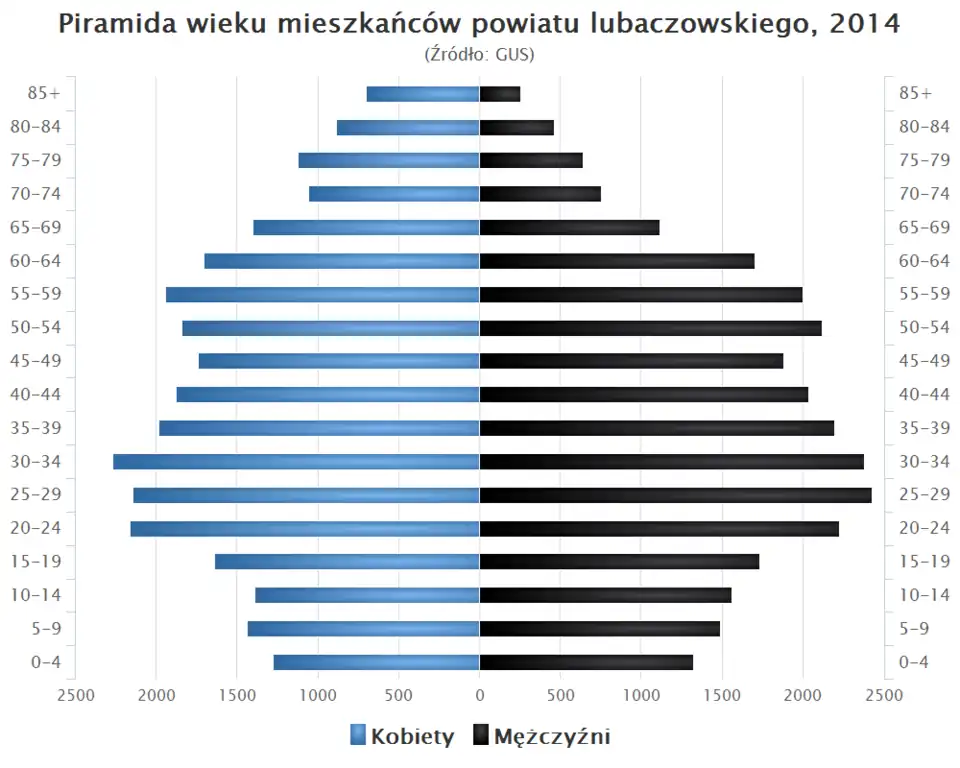 - Piramida wieku mieszkańców powiatu lubaczowskiego w 2014 roku[5].