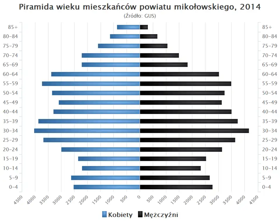 - Piramida wieku mieszkańców powiatu mikołowskiego w 2014 roku[9].