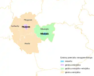 - gminy wiejskie: Mrągowo, Piecki, Sorkwity