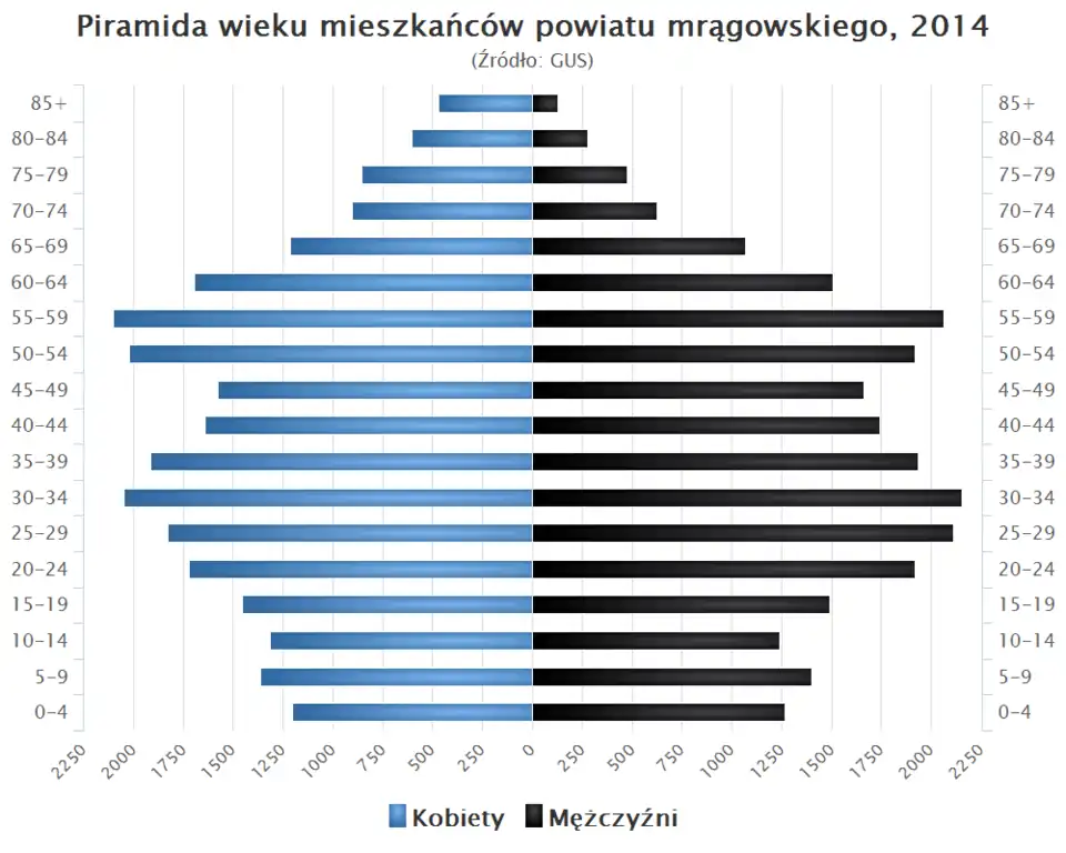 - Piramida wieku mieszkańców powiatu mrągowskiego w 2014 roku[4].