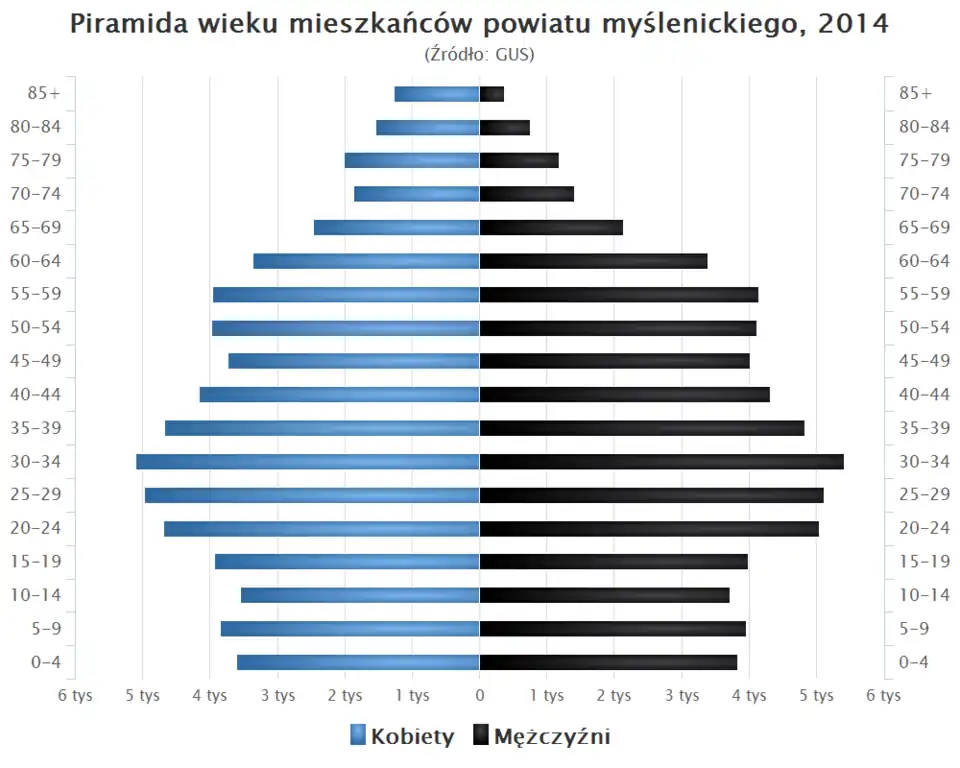 - Piramida wieku mieszkańców powiatu myślenickiego w 2014 roku[5].