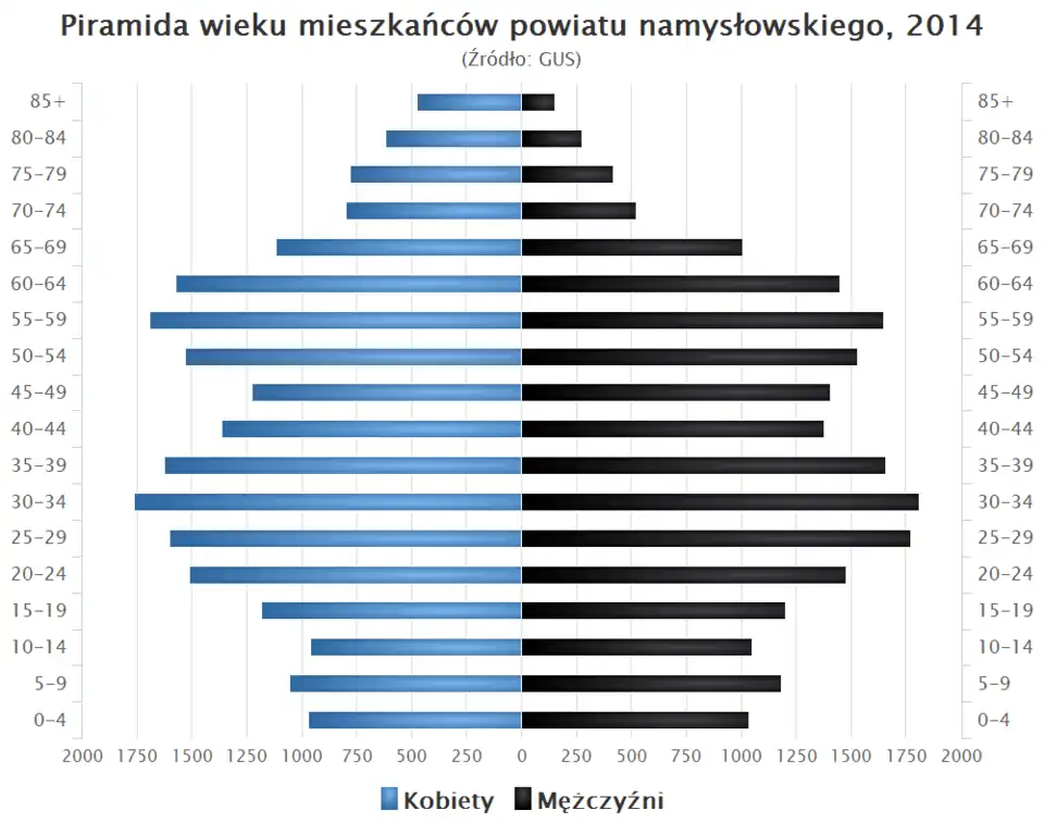 - Piramida wieku mieszkańców powiatu namysłowskiego w 2014 roku[5].