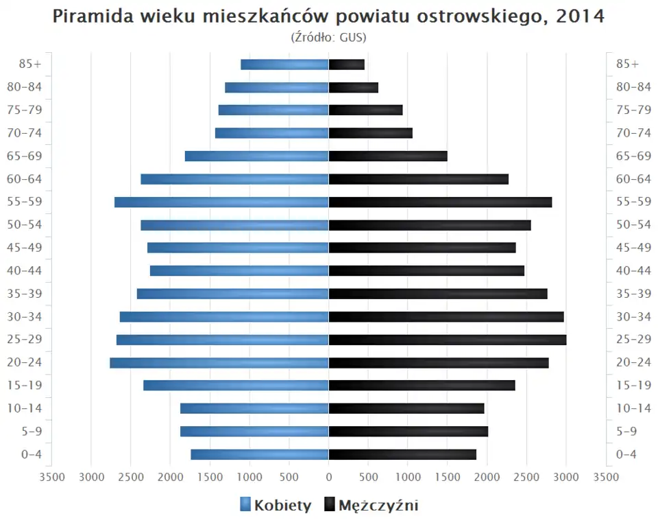 - Piramida wieku mieszkańców powiatu ostrowskiego w 2014 roku[6].