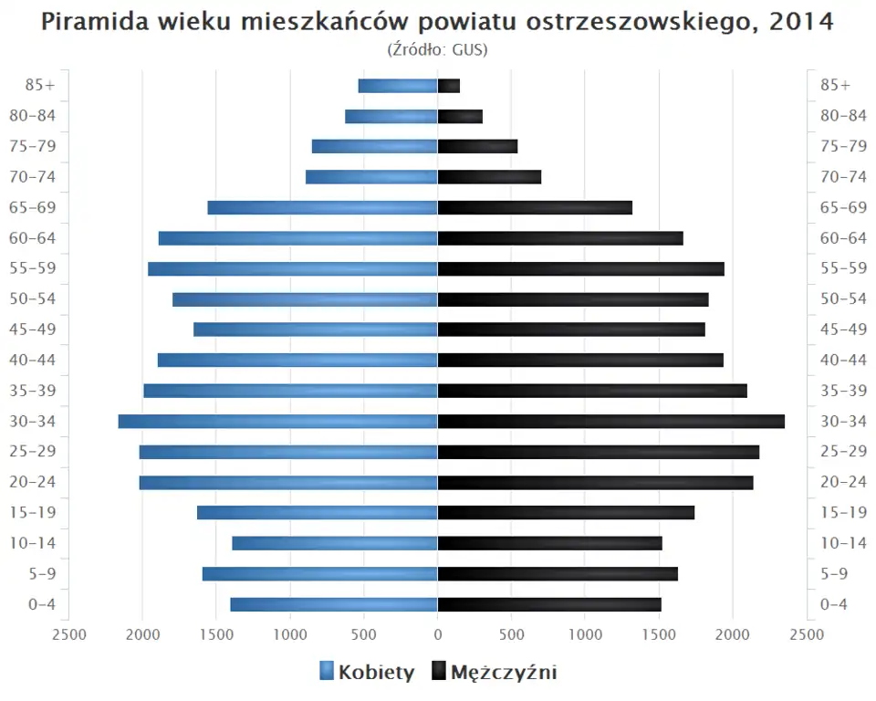 - Piramida wieku mieszkańców powiatu ostrzeszowskiego w 2014 roku[21].