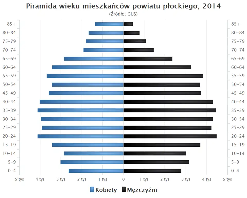 - Piramida wieku mieszkańców powiatu płockiego w 2014 roku[4].